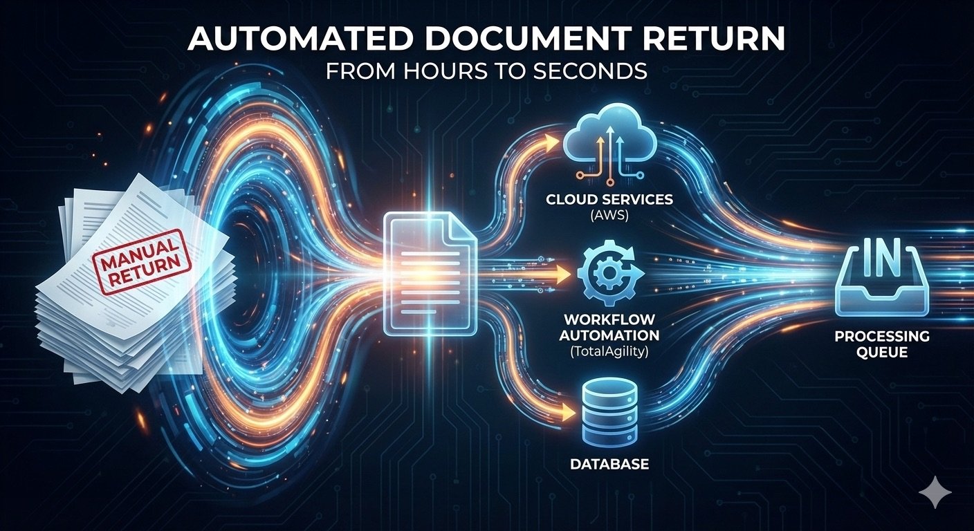 The return process looked simple on paper: identify the document, update the records, prepare the file, and re-import it into the mailroom queue. In practice, it consumed entire shifts.